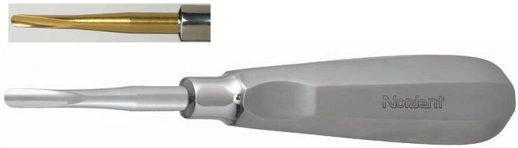 Là dụng cụ được làm thủ công với chất liệu Titanium, được mạ vàng 76K ở mặt lưỡi, với đầu thực hành được uốn cong nhẹ về sau cải thiện sự thích ứng, rất phù hợp trong việc nhổ răng cối hoặc tiểu phẩu