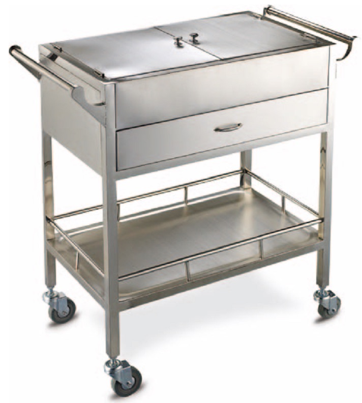 Xe đẩy cấp phát thuốc được sản xuất từ chất liệu inox chuyên dụng, gồm 2 tầng đựng thiết bị, có hộc kéo tiện dụng. Xe đẩy phát thuốc có kích thước 680 x 400 x 870 mm.