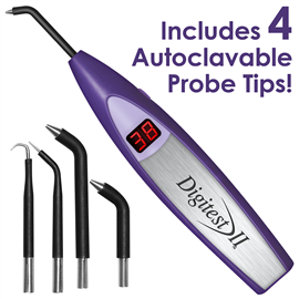 The Digitest II shares the same autoclavable testing probes as the original Digitest and comes with four different styles-standard Long and Short, and precision Labial and Lingual. These styles should allow you to test just about any tooth a patient presents with.